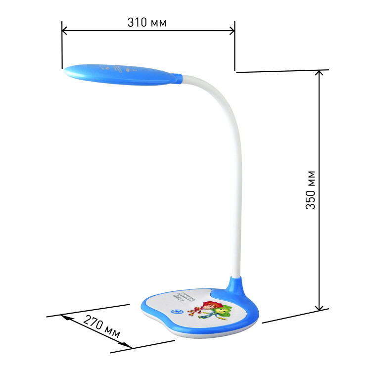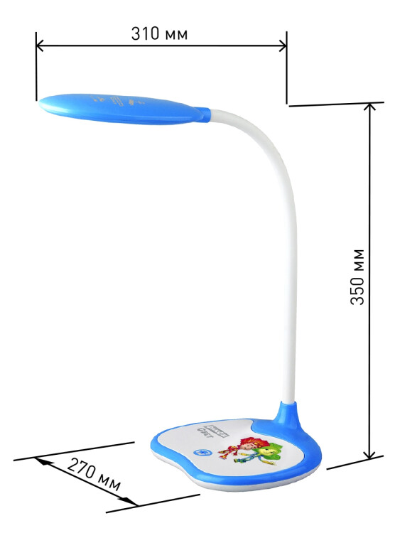 Настольный светильник ЭРА NLED-433-6W-BU серии ФИК СИКИ, созданной по мотивам популярного современного мультфильма. Светильник оснащен сенсорным управлением и возможностью выбора цветовой температуры (теплый, нейтральный или холодный свет). Яркость регулируется при помощи плавного диммера. Плафон наклоняется и поворачивается в любом направлении для максимального комфорта при использовании. Устойчивое основание. Этот современный настольный светильник оценит ребенок, интересующийся гаджетами и новыми технологиями. То есть практически каждый ребенок. Уроки будут делаться с удовольствием.