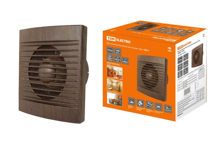 TDM Вентилятор бытовой настенный, 100 С "ЭКО" (бук)