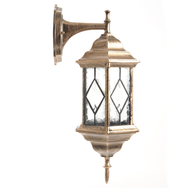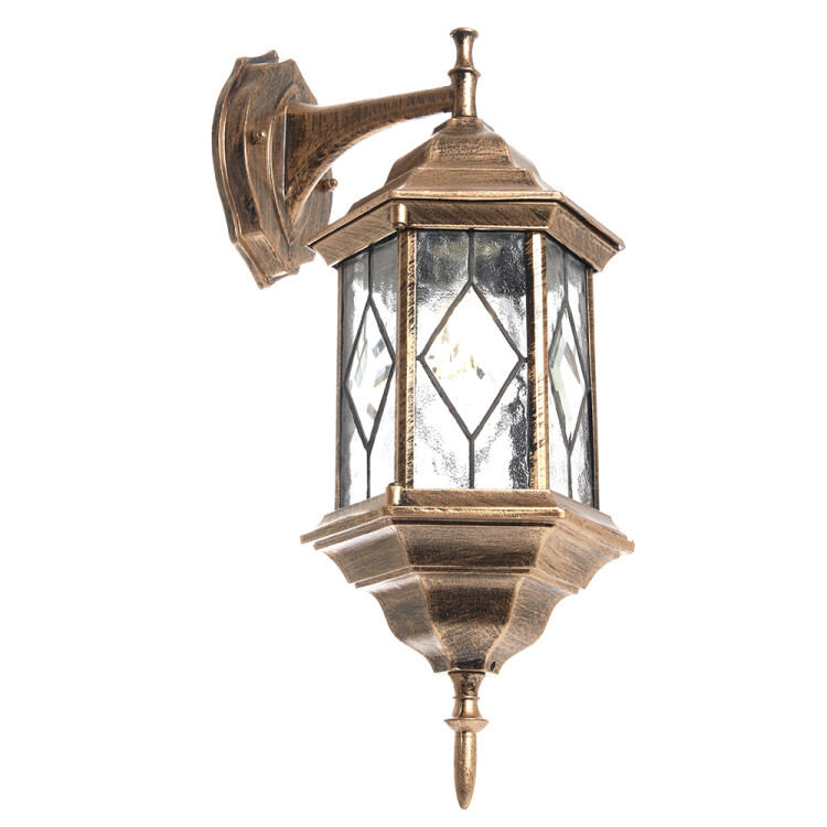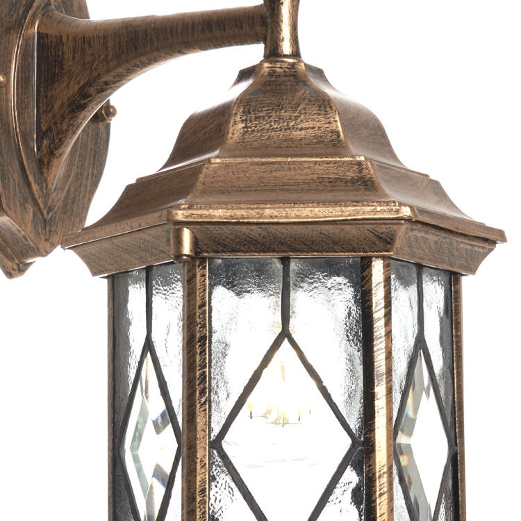 Светильник садово-парковый, серии «Сорренто», (НБУ) FERON PL122 60W, E27, 230V, IP44, цвет черное золото, 6-и гранник, на стену вниз, 165*200*430мм
