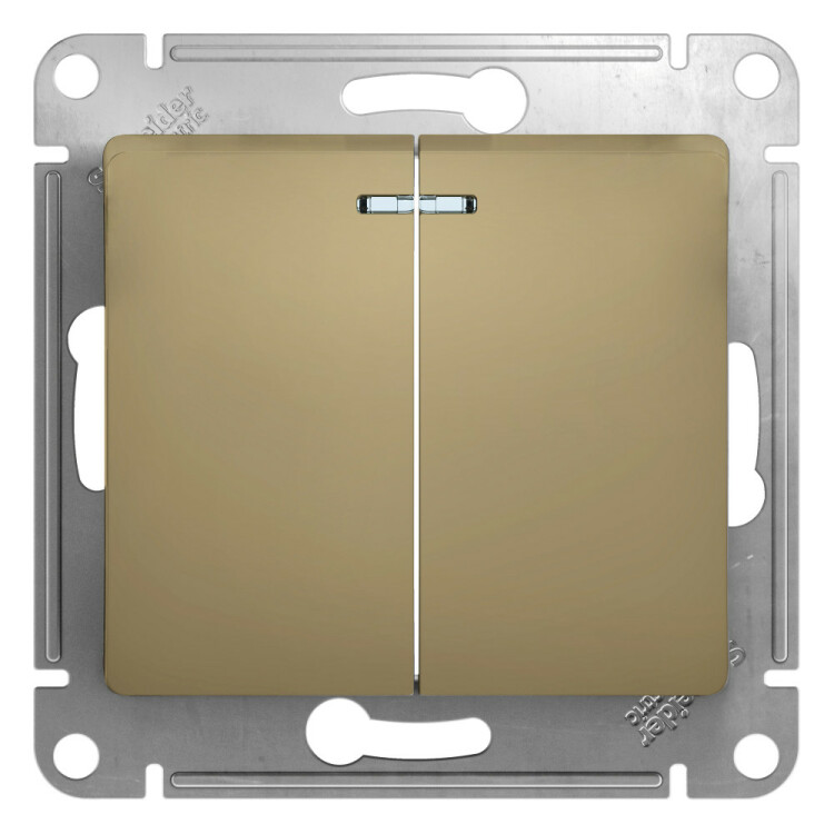 Механизм Systeme Electric (ранее Schneider Electric) серии Glossa (цвет титан) выключателя 2-клавишного с подсветкой подходит для сетей 250 В, на ток 10 А. Благодаря современной светодиодной подсветке зеленого цвета изделие легко найти в темноте. Двухклавишный выключатель позволяет управлять двумя источниками света с одной точки. Выполнен из материала PС+ASA, стойкого к УФ-излучению и появлению царапин. Эргономичные клеммы расположены в два ряда: сверху и снизу.