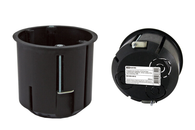 TDM Установочная коробка СП D73х73мм, углубленная, саморезы, метал. лапки, IP20, инд. штрихкод,.