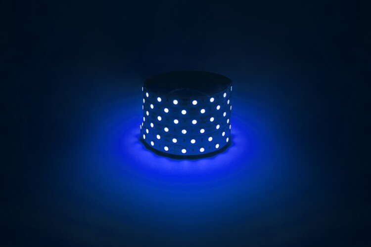 Светодиодная лента LS5050-14,4-60-12-B-IP20-1 year-5m со степенью защиты от пыли и влаги IP20 - современный способ создания внутреннего освещения, подсветки ниш, лестничного пространства, систем хранения, а также декоративного и художественного оформления любых объектов и форм. Легко и быстро устанавливается на любой гладкой поверхности с помощью скотча, расположенного на оборотной стороне ленты. Используя алюминиевый профиль, можно создавать необычные и функциональные решения освещения в Вашем интерьере. Рабочее напряжение ленты составляет 12 В, а мощность равна 14,4 Вт/м. Светодиодная лента обладает - синим цветом свечения (465нМ).