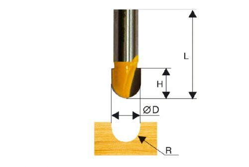 Диаметр фрезы D: 25.4 мм, Диаметр хвостовика d: 12 мм, Радиус R: 12.7 мм, Рабочая высота Н: 32 мм, Общая высота L: 70 мм