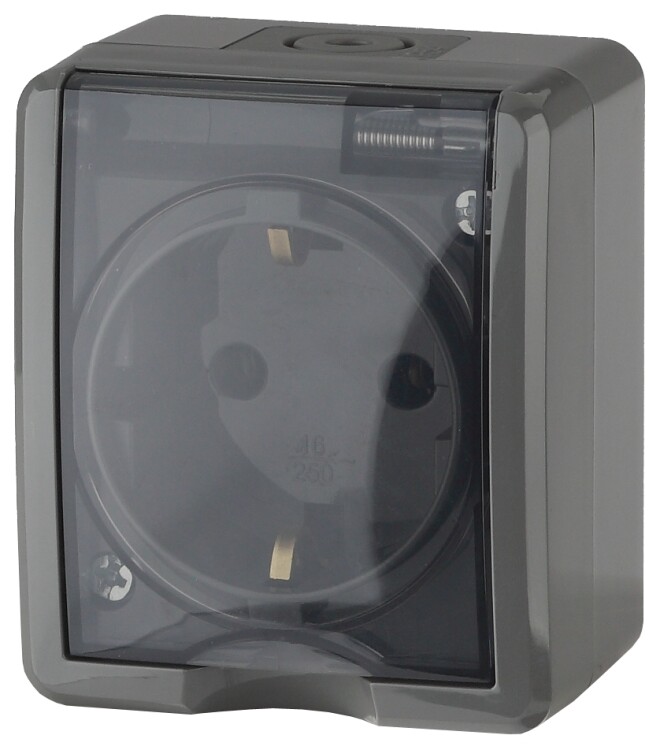 Розетка IP54 серии Эра Эксперт открытой установки цвет серый 11-2401-03 . Номинальные характеристики 16А 250В . Устройство выполнено из качественного поликарбоната, оснащёно уникальными винтовыми клеммами ЭКСПЕРТ для максимально качественного зажима кабеля в механизме.