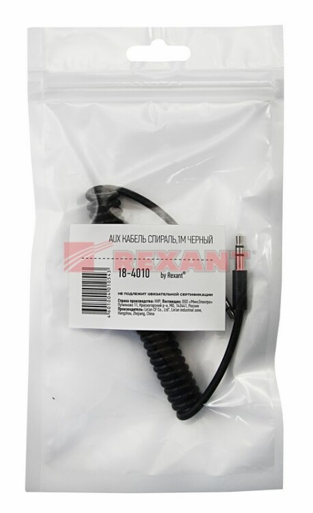 REXANT Аудио кабель AUX 3.5 мм шнур спираль 1M черный.