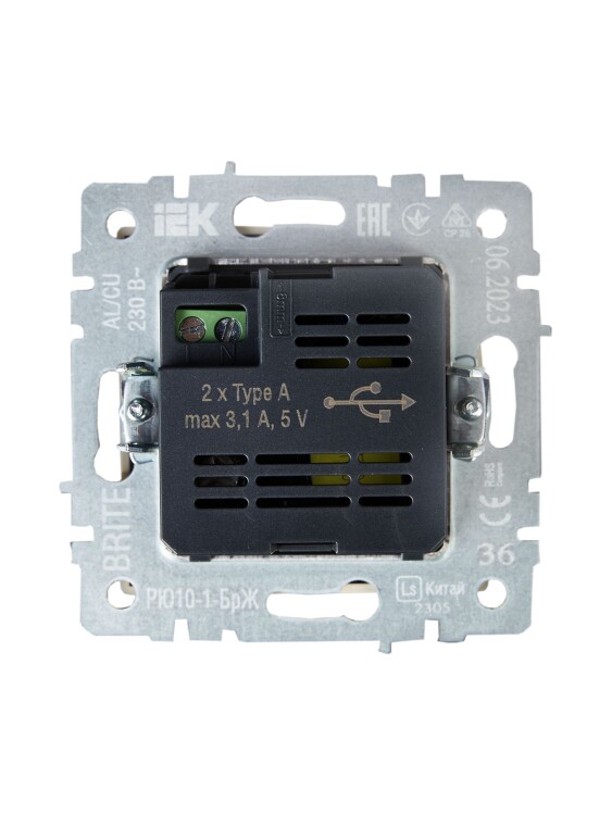 IEK BRITE BASE Жемчуг Розетка USB A+A 3,1А РЮ10-1-БрЖ