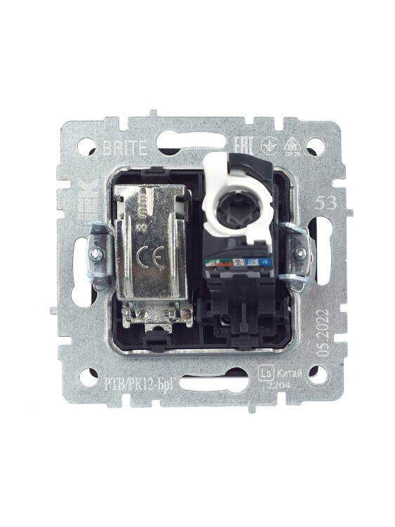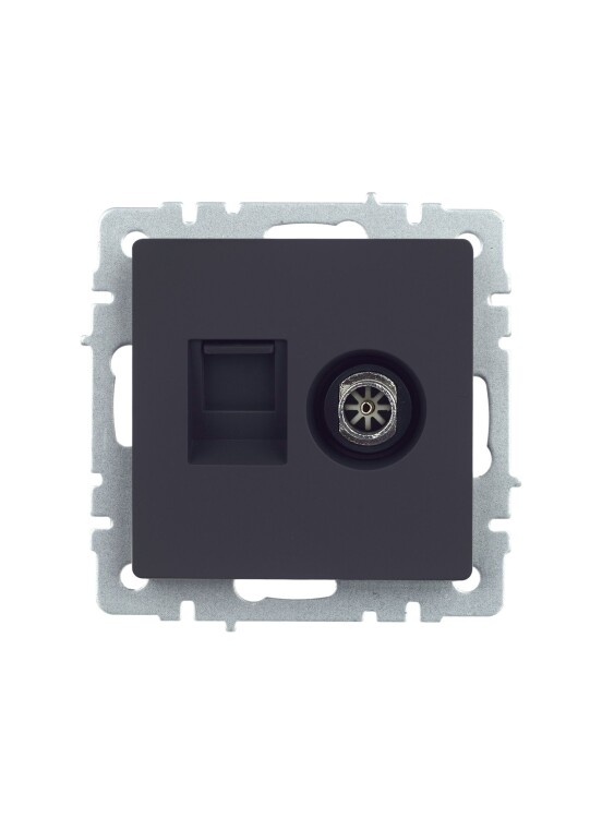 IEK BRITE BASE Графит Розетка двойная TV+RJ45 кат.5E РТВ/РК12-БрГ