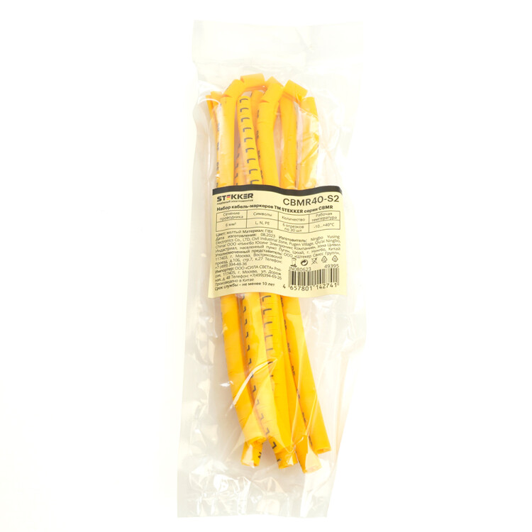 Набор кабель-маркеров DIY электромонтажный STEKKER CBMR40-S2, , желтый, материал - ПВХ, размер 98*98мм, максимальный диаметр пучка - мм, нагрузка - кг, диапазон рабочих температур -10°C - +40°C, рекомендуемая температура хранениня