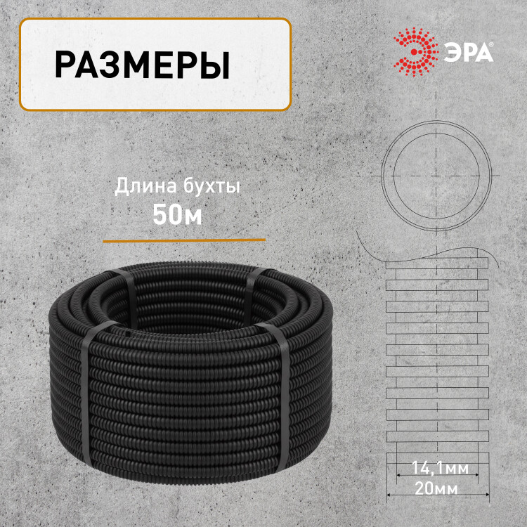 ЭРА Труба гофрированная ПНД GOFR-20-50-HD легкая черная d 20мм с зондом 50м