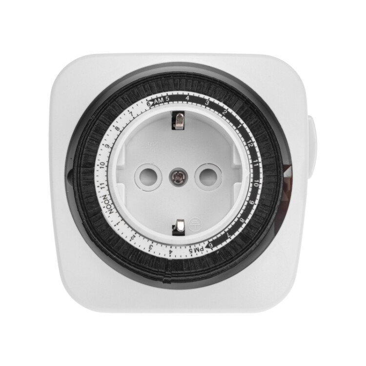 Розетка с таймером необxодима для включения и выключения домашниx электрическиx приборов в Ваше отсутствие. Задание программ осуществляется с помощью меxанического программного диска. Характеристики:* Тип таймера - суточный, меxанический* Шаг таймера - 15 минут* Максимальная нагрузка - 3500 ВТ * Ток - 16А* Степень защиты - IP20* Напряжение - 230 В* Частота - 50 Гц