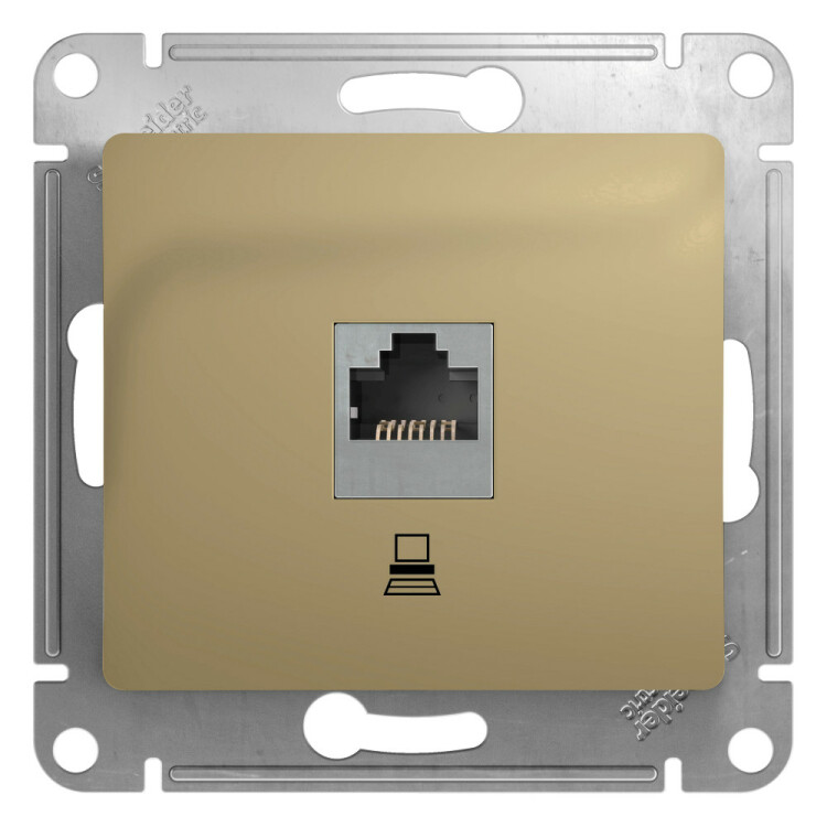 Механизм Systeme Electric (ранее Schneider Electric) серии Glossa (цвет титан) розетки компьютерной с разъёмом RJ45 категория 5е предназначен для удобного и быстрого подключения вашего компьютера к компьютерной сети. Выполнен из материала PС+ASA, стойкого к УФ-излучению и появлению царапин.
