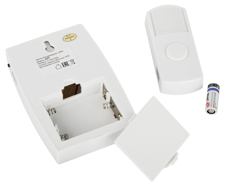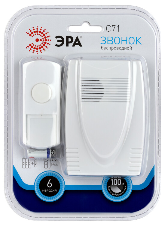 Беспроводной электрический дверной звонок с 6 качественными мелодиями и влагозащищённой кнопкой. Прост в подключении. Отсутствие проводов позволяет использовать звонок с максимальным удобством. Динамик можно разместить в коридоре или взять с собой в комнату/на кухню, если не хотите разбудить домочадцев. Беспроводные звонки ЭРА хороши для дачи или загородного дома установите кнопку на дверной калитке, а динамик в помещении. Радиус действия - до 100 метров. Звонок работает от батареек: 1 шт А23 для кнопки (входит в комплект), 3 шт АА пальчиковые для динамика (в комплект не входят). При среднем использовании (до 20 звонков в день) исправно проработает без замены элементов питания не менее года. Блистерная упаковка.