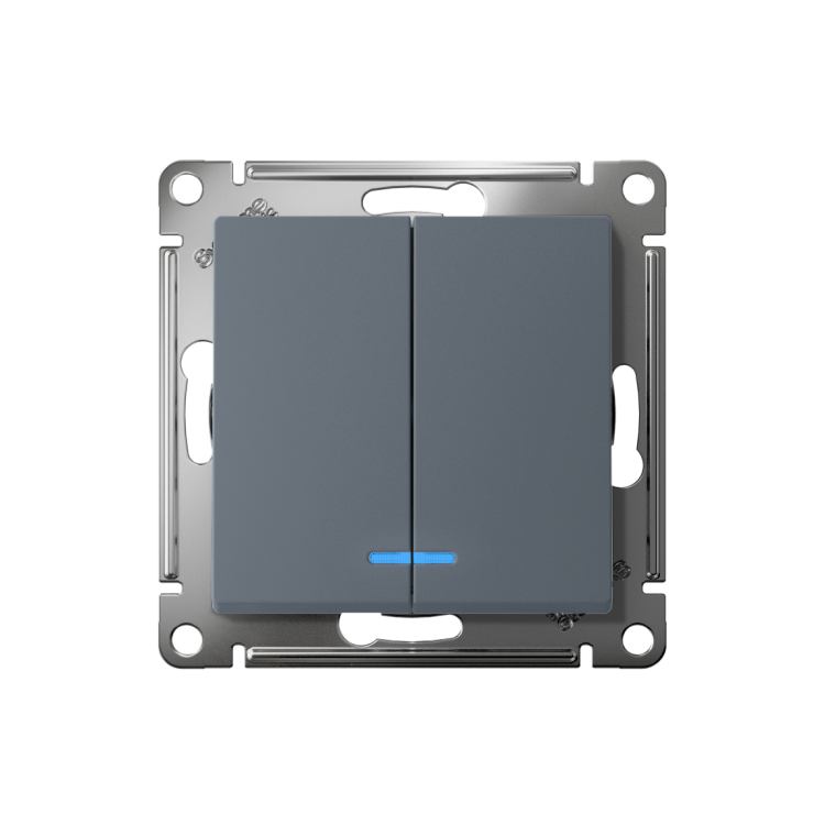 Механизм Systeme Electric (ранее Schneider Electric) серии AtlasDesign в цвете грифель выключателя 2-клавишного c подсветкой подходит для сетей 250 В, на ток 10 А. Благодаря светодиодной подсветке синего цвета изделие легко найти в темноте. Двухклавишный выключатель позволяет управлять двумя источниками света с одной точки. Лицевые детали из качественного ABS-пластика, устойчивого к царапинам и УФ-излучению.