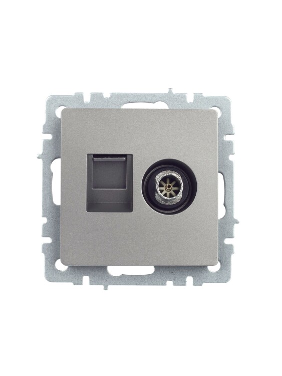 IEK BRITE BASE Сталь Розетка двойная TV+RJ45 кат.5E РТВ/РК12-БрС