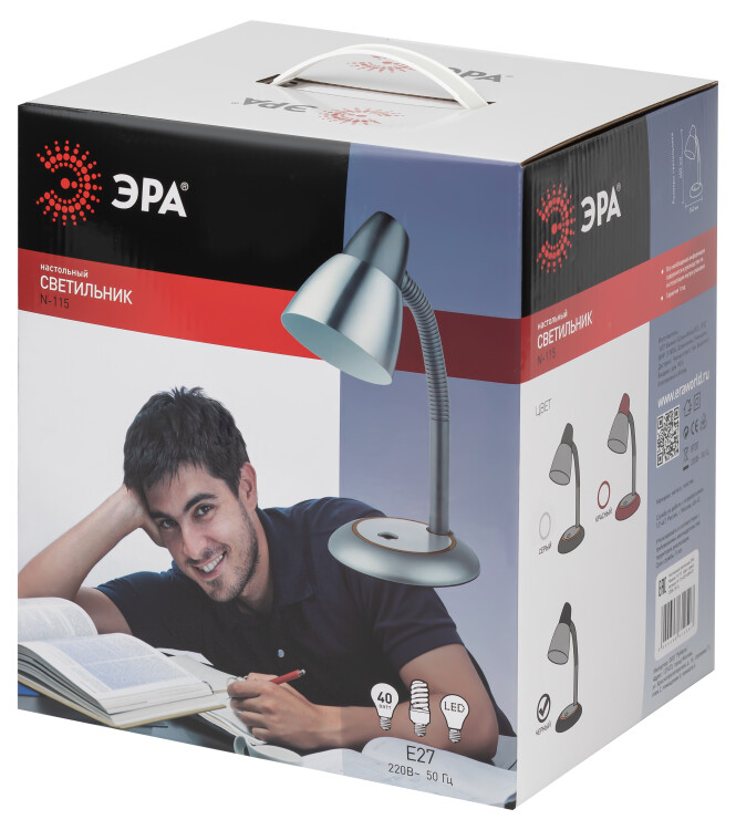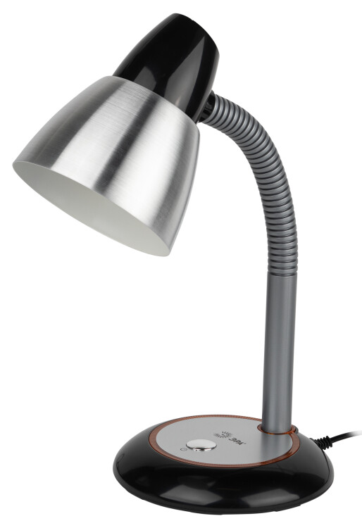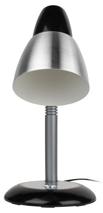 Настольный светильник ЭРА N-115-E27-40W-BK может ис пользоваться с лампой накаливания, компактной люминесцентной лампой (КЛЛ) или светодиодной (LED) лампой. У светильника классический солидный дизайн, устойчивое металлическое основание. А также металлический плафон большого диаметра для комфортного рассеивания света. Направление света регулируется наклоном и поворотом плафона в любом направлении.
