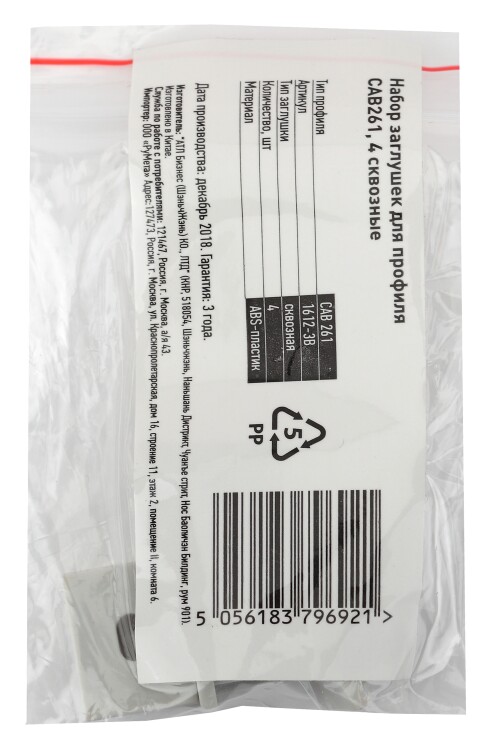 Набор заглушек для профиля CAB261, 4 сквозные. Изготовлены из негорючего пластика