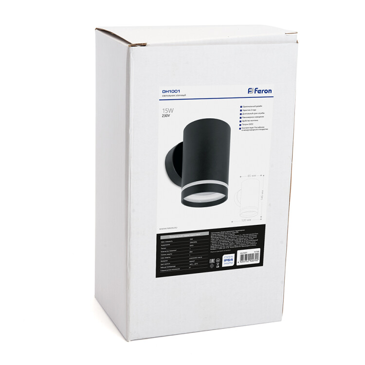 Feron Светильник садово-парковый, 230V GX53, DH1001, черный (на стену)