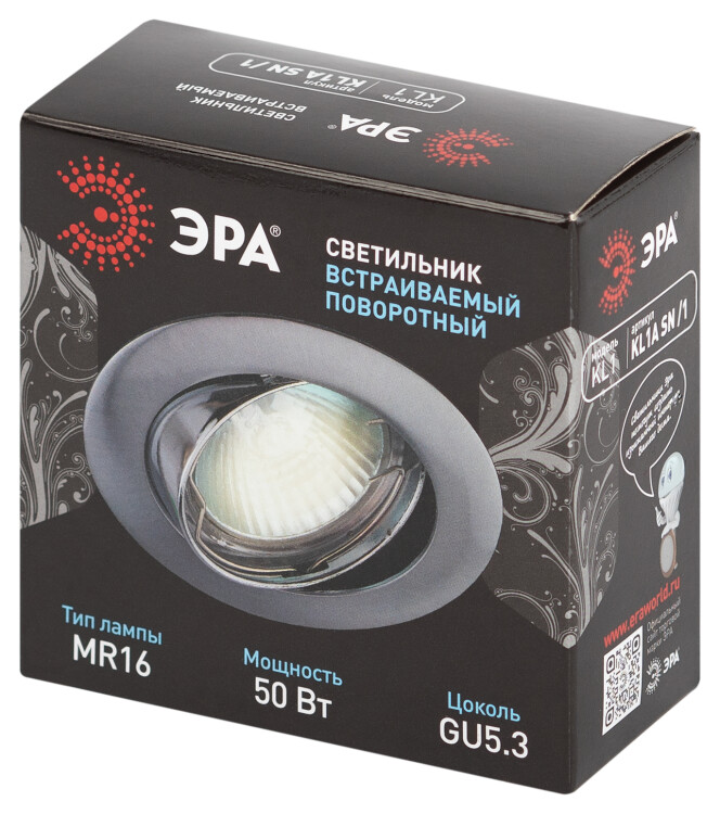 Точечный поворотный светильник KL1A SN/1 предназначен для встраивания в потолок или стены. Он идеально подойдет для самых разных целей – с помощью таких светильников можно подчеркнуть отдельные зоны в комнатах и успешно расставить акценты. С помощью встраиваемых светильников можно подсвечивать зоны от рабочего места до пространства для готовки на кухне. Благодаря поворотному механизму светильник можно направить в нужные участки, например, в рабочую область. С таким механизмом вы имеете возможность поменять световой рисунок в комнате в любой момент. KL1A SN/1 выполнен из алюминия, отличающегося своими качеством и долговечностью. Внешний размер светильника - 81 миллиметров, а монтажный - 75 миллиметров. Для данного светильника подойдет лампа MR16 с цоколем GU5.3 максимальной мощности 50 Вт. Степень защиты светильника - IP20, она дает возможность устанавливать его в разных помещениях, кроме тех, где повышена влажность. Светильник выполнен в цвете сатин никель , что позволяет размещать его в самых разных интерьерах: от лофта до классицизма. Купив светильник Эра, вы сможете создать в своем доме атмосферу уюта и комфорта.