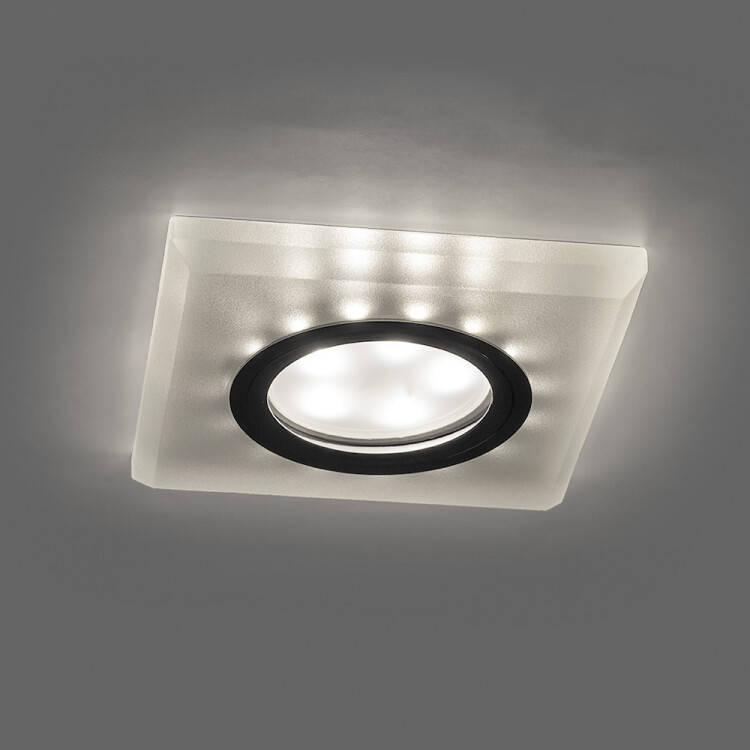 Светильник потолочный встраиваемый (ИВО) FERON CD8170, под лампу с LED подсветкой 15LED*2835 SMD 4000K, MR16 G5.3, белый матовый хром, квадрат, 90*90*20 мм, монтажный диаметр 60мм, корпус стекло, неповоротный