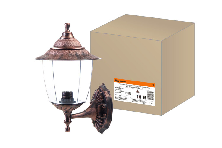 TDM Светильник Прага Эл-11-71М 60 Вт Е27 настенный вверх медь, прозрачный плафон.