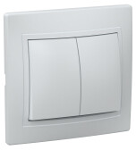 Intro Выключатель Plano 1-104-02 двухклавишный, 10А-250В, IP20, СУ, слоновая кость