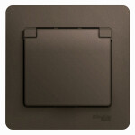 GLOSSA РОЗЕТКА с заземлением со шторками с крышкой, в сборе, IP20, ШОКОЛАД