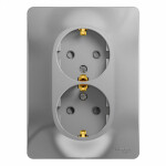 GLOSSA РОЗЕТКА двойная с заземлением со шторками, 16А, в сборе, АЛЮМИНИЙ