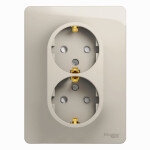 GLOSSA РОЗЕТКА двойная с заземлением со шторками,16А, 250В, в сборе,МОЛОЧНЫЙ