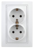 Intro Розетка Solo 4-208-01 с заземлением двойная 2X2P+E Schuko со шторками, 16А-250В, IP20, СУ, белый