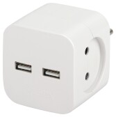 ЭРА Разветвитель электрический SP-2-USB-W на 2 розетки + 2xUSB 2400mA без заземления 10А белый