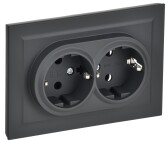 Intro Розетка Plano 1-204-05 без заземления двойная 2х2P, 16А-250В, IP20, СУ, антрацит