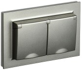 IEK BRITE Алюминий Розетка 2-м с/зс защ штор и крыш 16А в сборе IP44 РСбш12-3-44-БрС