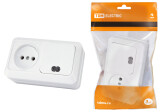 TDM Блок комбинированный выкл. 1-кл. с/п 10А + розетка 2П 10А 250В БКВР IP20 белый "Ладога".