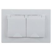 1-210-01 Intro Розетка 2х2P+E Schuko с крышкой штор., 16А-250В, IP20, СУ, IP44, Plano, белый (10/100/1500)