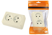 TDM Розетка двойная 2П+З открытой установки с з/ш IP20 16А, слоновая кость "Ладога"