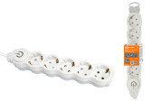 TDM Удлинитель бытовой "Люкс" УЛ05В выкл, 5 гнезд, 3м, с/з, с з/ш, ПВС 3х1мм2 16А/250В бело-серый.