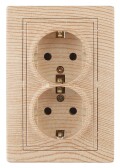 Intro Розетка Plano 1-205-11 с заземлением двойная 2X2P+E Schuko, 16А-250В, IP20, СУ, сосна