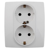 Intro Розетка Solo 4-208-01 с заземлением двойная 2X2P+E Schuko со шторками, 16А-250В, IP20, СУ, белый