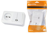 TDM Блок комбинированный выкл. 2-кл. с/п 10А + розетка 2П 10А 250В БКВР IP20 белый "Ладога".