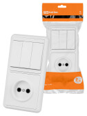 Intro Блок розетка с выключателем Quadro 2-701-01 горизонтальный 10(16)А-250В, IP20, ОУ, белый