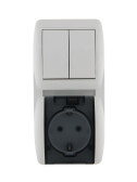 Intro Блок розетка с выключателем Quadro 2-706-01 двойным вертикальный 10(16)А-250В, IP20, ОУ, белый
