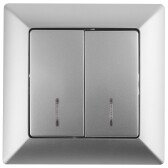 Intro Выключатель Plano 1-105-03 двухклавишный с подсветкой, 10А-250В, IP20, СУ, алюминий