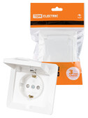 TDM Розетка 2П+З 16А 250В IP44 с защ. шт. с крышкой белая "Лама"
