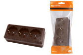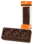 TDM Розетка 3-х местная горизонтальная 2П открытой установки IP20 10A бук "Ладога".