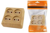 TDM Розетка четырехместная 2П открытой установки IP20 10A с защитными шторками сосна "Ладога".