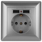 Intro 4-410-03 Розетка P+E Schuko со шторками, 16А-250В + 2хUSB, СУ, Solo, алюминий (10/100/2000)