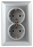 Intro Розетка Solo 4-205-03 с заземлением двойная 2X2P+E Schuko, 16А-250В, IP20, СУ, алюминий