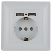 Intro 4-410-01 Розетка P+E Schuko со шторками, 16А-250В + 2хUSB, СУ, Solo, белый (10/100/2500)