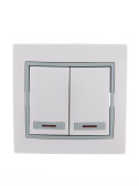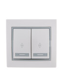 Lezard Мира белый с сер.вст. Выключатель 2-ой с подсветкой 1/10/120