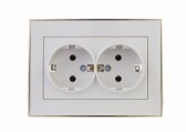 Lezard RAIN белый с бок. вст. золото Розетка двойная с/з керамика 1/10/120